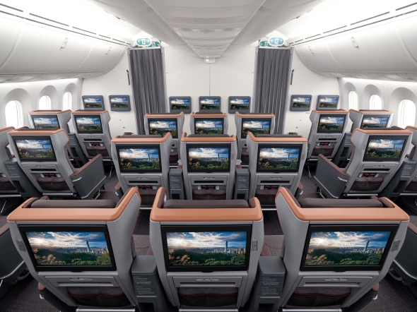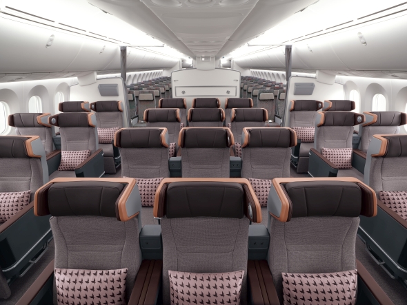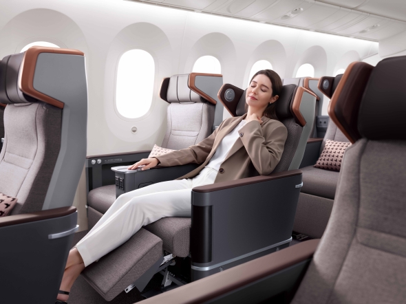 - Nová Premium Economy trieda na Boeing 787-9 má 28 sedadiel usporiadaných v konfigurácii 2-3-2, s priemyselne vedúcim rozstupom sedadiel 106,68 cm (42 palcov).